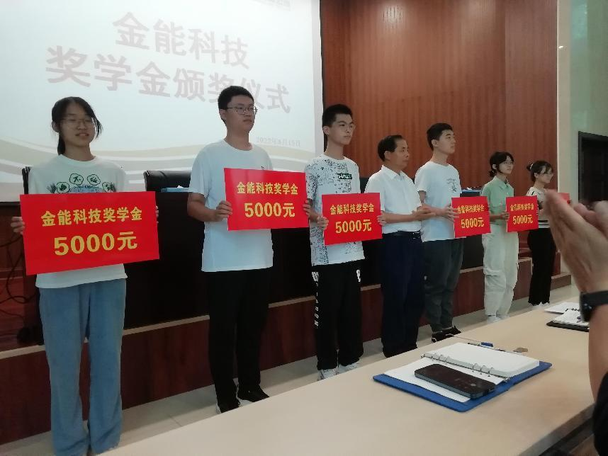 8月15日,金能科技股份有限公司為房若民、楊金芬、鄭望東等8名公司員工子女頒發獎學金。