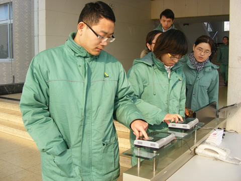 日前,公司新上的指紋識(shí)別系統(tǒng)正式投入運(yùn)行。該系統(tǒng)主要包括指紋機(jī)及附屬設(shè)備。指紋機(jī)以采集的指紋辨識(shí)人員身份,對(duì)辦公區(qū)的考勤統(tǒng)一管理,也進(jìn)一步規(guī)范了外來(lái)人員出入公司的秩序。(圖為員工打指紋下班)
