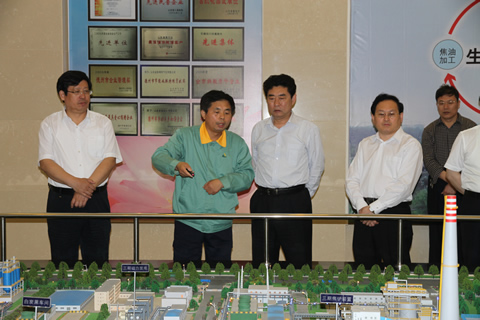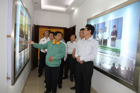 在公司副董事長單曰新的陪同下,鄧向陽副省長先后參觀了公司廠區、生產調度中心。在公司展廳,單曰新副董事長匯報了公司的基本情況、循環經濟特點、企業安全主體責任落實情況及安全生產方面的做法。