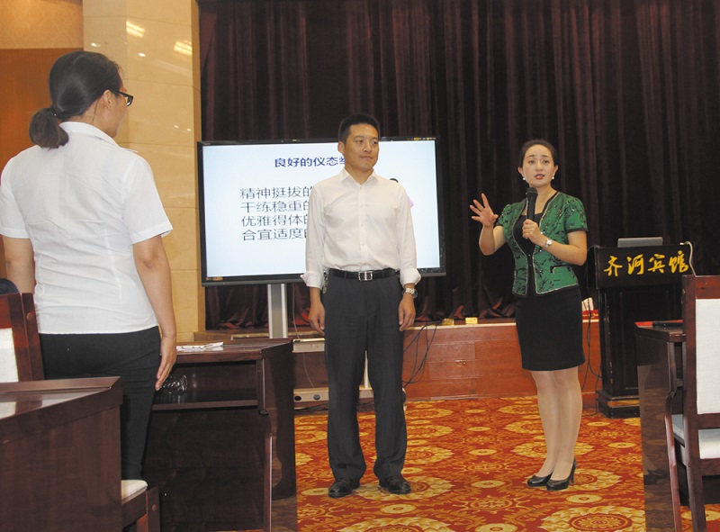 9月24日,公司舉辦了商務禮儀和職業形象塑造培訓班。公司中高層管理人員及辦公樓員工參加了培訓。培訓外請清華大學禮儀專家馬瑛授課,馬老師從衣、食、行、訪、談、送六個方面進行了精彩講授,恰到的互動,生動的案例,讓聽者受益匪淺,表示在以后的工作中積極應用,做文明禮儀的傳播者與踐行者(圖為授課現場)。