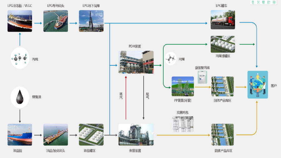 此外,金能青島氫能源綜合利用項目位于董家口經濟區,董家口港配套建設有2個液體化學品泊位,公司在港口建設管道直連廠區,丙烷原料可直接在港口通過管道進入洞庫,既安全高效,又節約運輸成本。